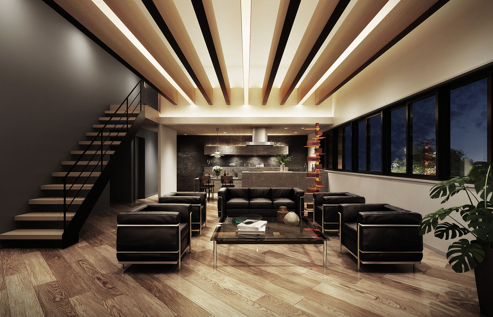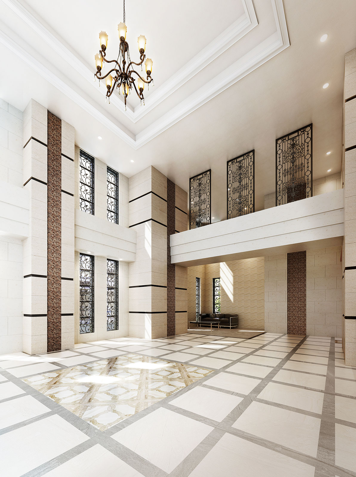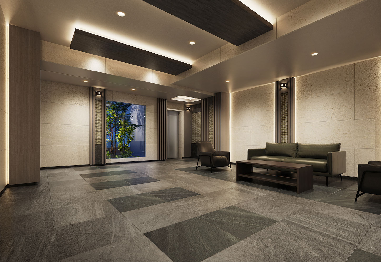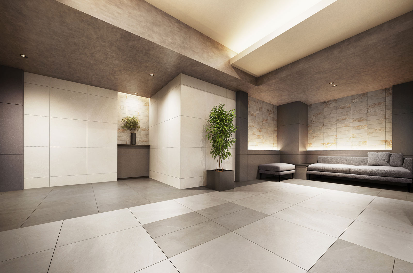 マンション(風除室・エントランスホール・ラウンジ)建築パース制作