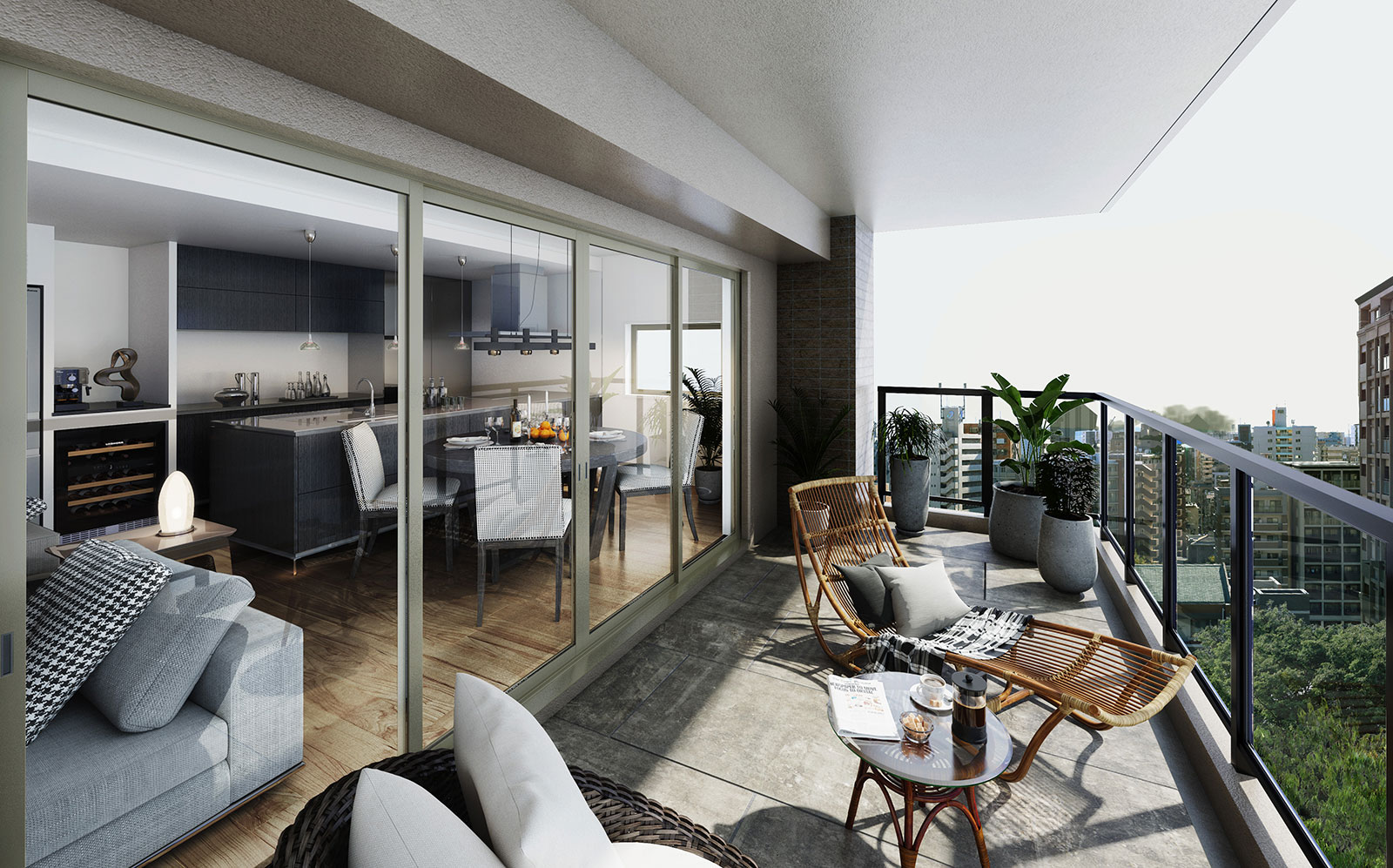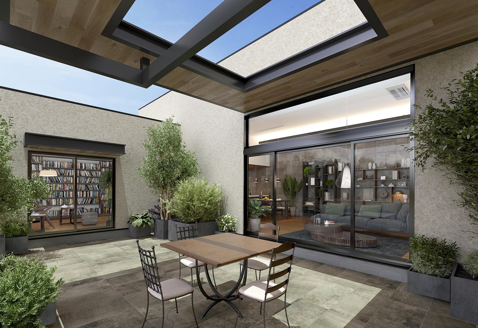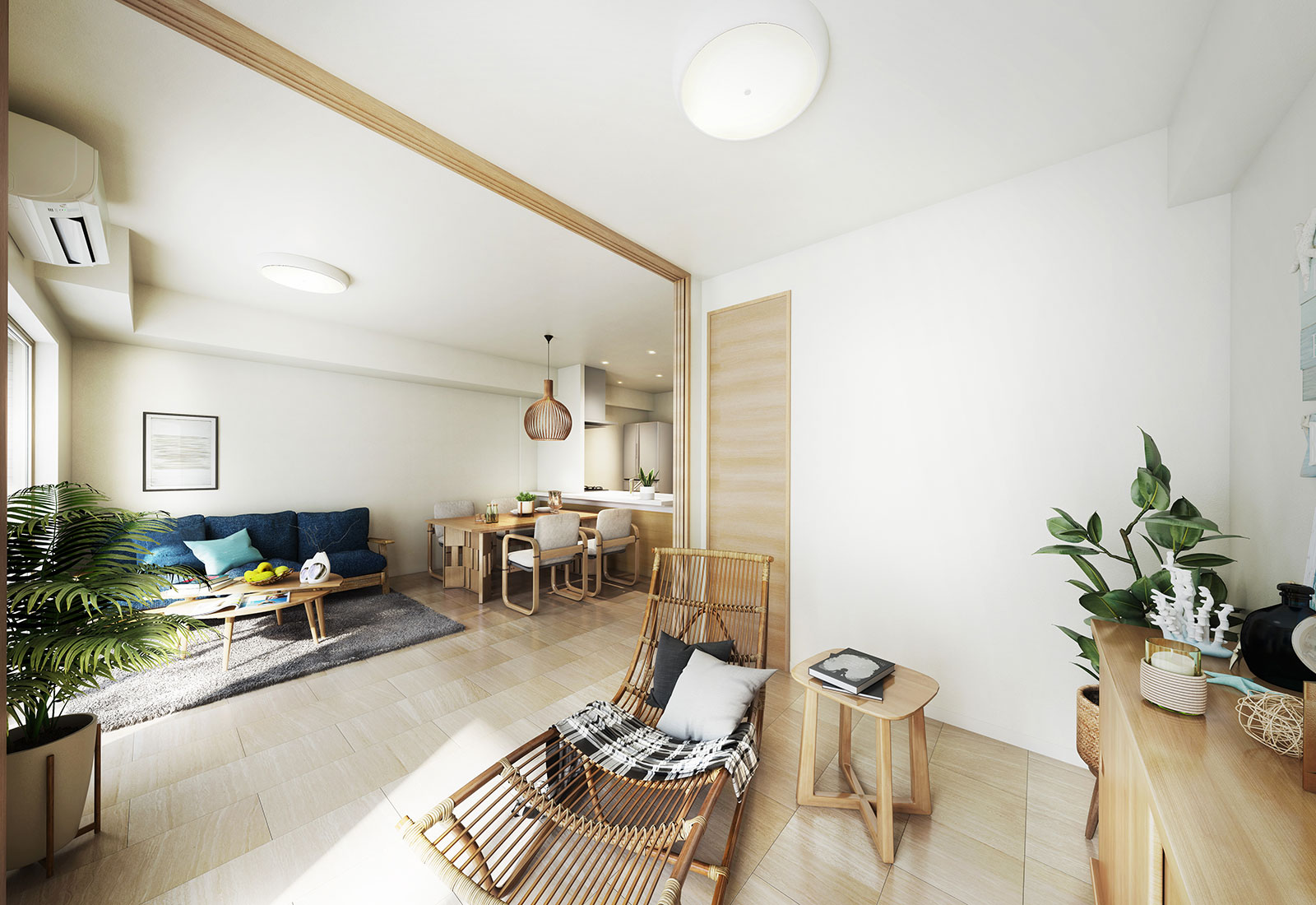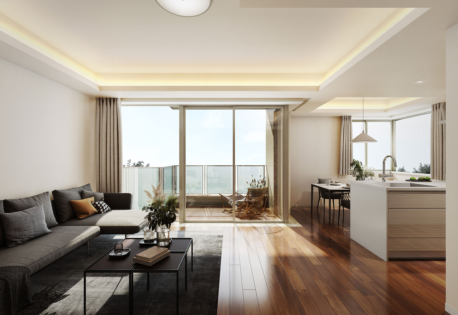 マンション(風除室・エントランスホール・ラウンジ)建築パース制作
