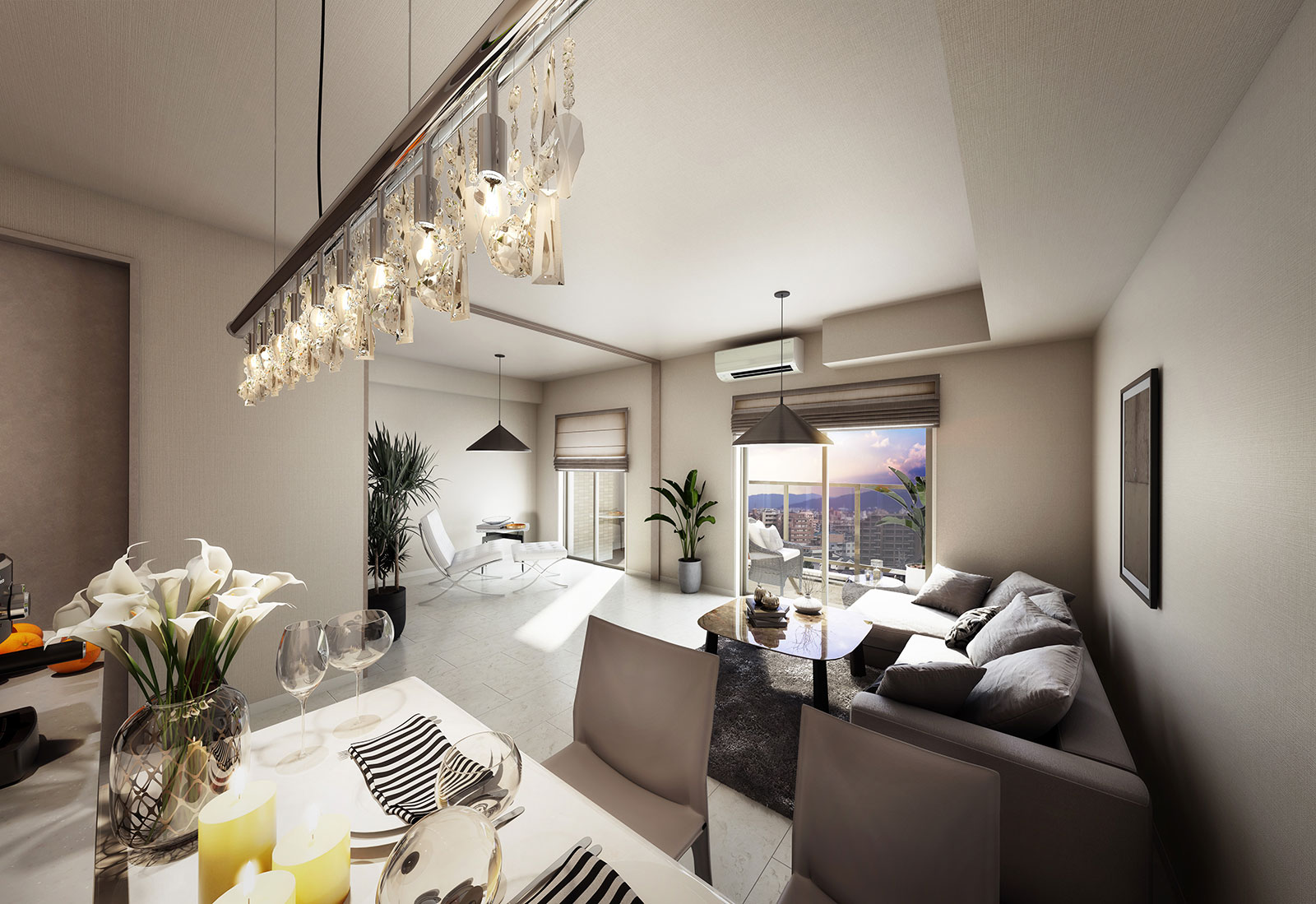 マンション(写真加工・写真合成)同アングルでの時間帯変更